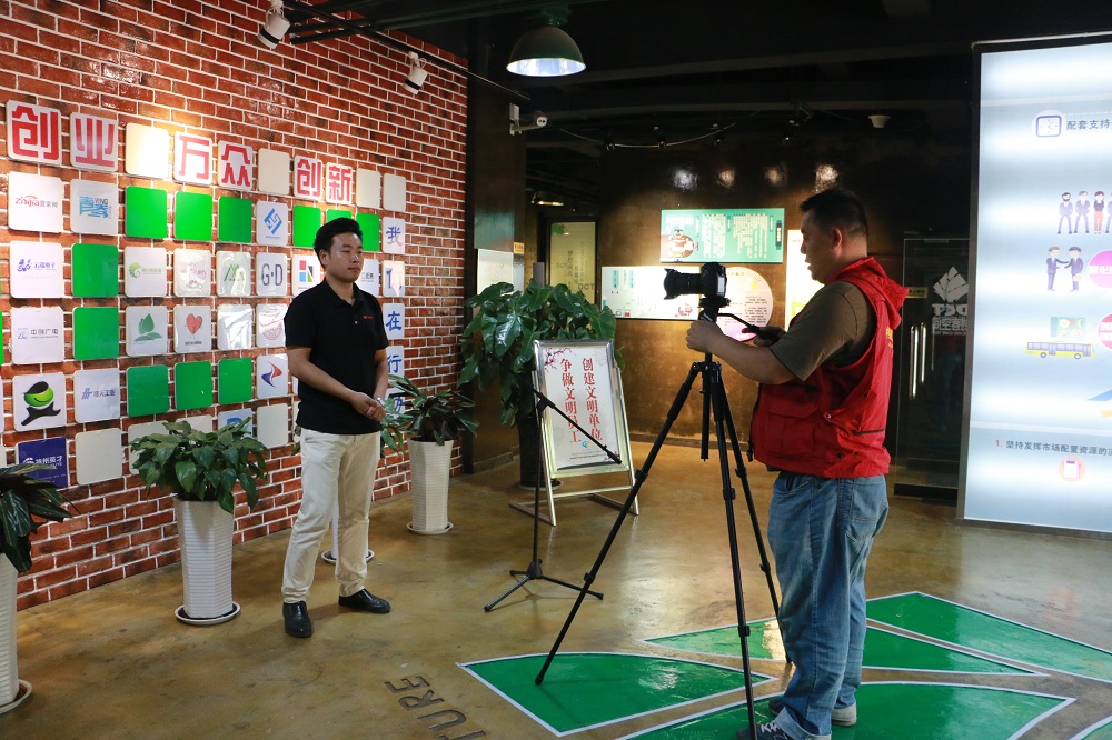 采訪人員首先在DCT創(chuàng)客空間一層創(chuàng)客書吧、項目路演大廳和人才交流展示區(qū)進行了拍攝,還采訪了DCT創(chuàng)客空間工作人員周承樸,周承樸介紹了DCT創(chuàng)客空間的服務理念以及今后將更加積極探索優(yōu)秀的孵化模式,助力更多創(chuàng)客實現夢想。