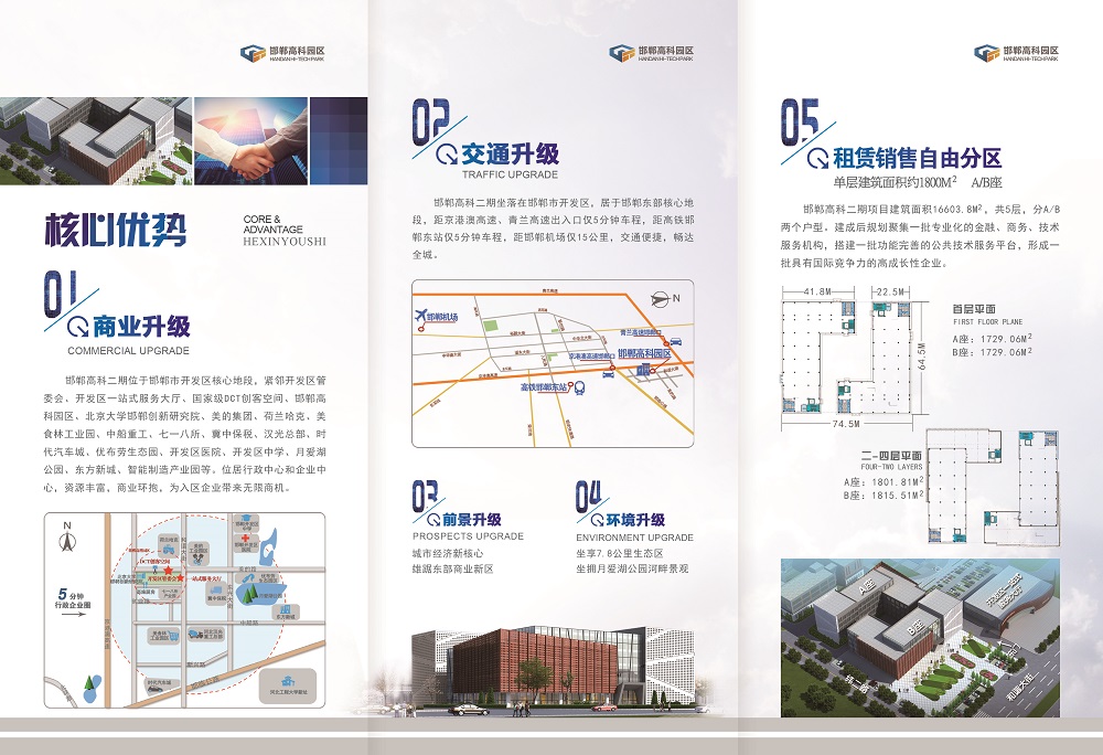 邯鄲高科二期項(xiàng)目建筑面積16603.8m,共5層,分A/B兩個(gè)戶型。建成后規(guī)劃聚集一批專業(yè)化的金融、商務(wù)、技術(shù)服務(wù)機(jī)構(gòu),搭建一批功能完善的公共技術(shù)服務(wù)平臺(tái),形成一批具有國(guó)際競(jìng)爭(zhēng)力的高成長(zhǎng)性企業(yè)。