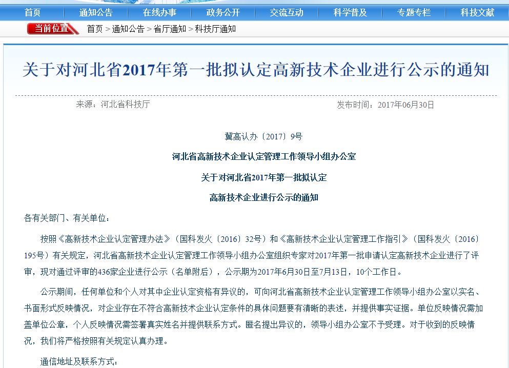 近日,河北省科技廳公示了2017年批擬認(rèn)定高新技術(shù)企業(yè),園區(qū)企業(yè)河北中創(chuàng)廣電科技有限公司榮登榜單。