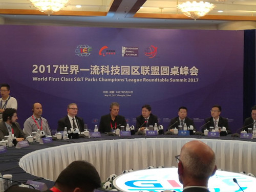 5月10日下午,2017世界一流科技園區(qū)聯(lián)盟圓桌峰會在成都世紀城國際會議中心成功舉行。本次峰會以“攜手共創(chuàng),領(lǐng)航未來”為主題,旨在集中國內(nèi)外科技園區(qū)的力量和智慧,交流園區(qū)建設(shè)的經(jīng)驗和思想??萍疾炕鹁嬷行闹魅螐堉竞辍⒊啥际形N?、市總工會主席吳凱出席會議并致辭。會議由法國索菲亞科技園CEO菲利普·馬里亞尼主持。