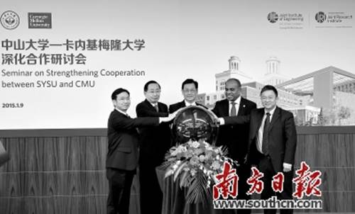 打造以大學城為核心的“創(chuàng)新發(fā)展智核”,為番禺創(chuàng)新驅動的重要方向。圖為中山大學—卡內基梅隆大學深化合作研討會在中山大學大學城校區(qū)舉行。王輝攝